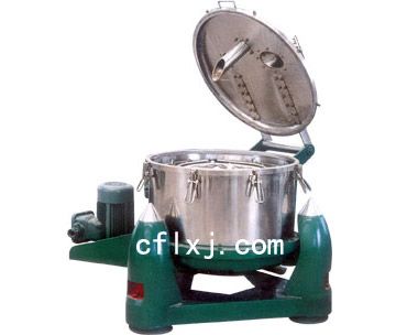 電動(dòng)機(jī)帶動(dòng)轉(zhuǎn)鼓高速旋轉(zhuǎn),物料由頂部進(jìn)料管加入轉(zhuǎn)鼓,在離心力作用下趨向鼓壁,其中液相穿過濾布和鼓壁濾孔排出。固相截留在轉(zhuǎn)鼓內(nèi),停機(jī)后啟開機(jī)蓋松開攔液板鎖緊銷,用起吊裝置將攔液板連同裝有濾渣的濾袋-并吊往卸料處,松開特制的吊爪使濾袋一端開口張開,濾餅便自動(dòng)落下。
